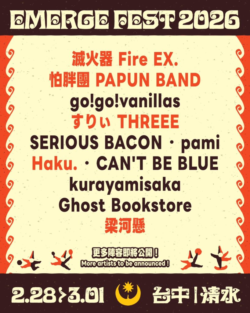 出演:|滅火器 Fire EX.|怕胖團 PAPUN BAND|go!go!vanillas|すりぃ THREEE|SERIOUS BACON|pami|Haku.|CAN’T BE BLUE|kurayamisaka|Ghost Bookstore|梁河懸|And More……!