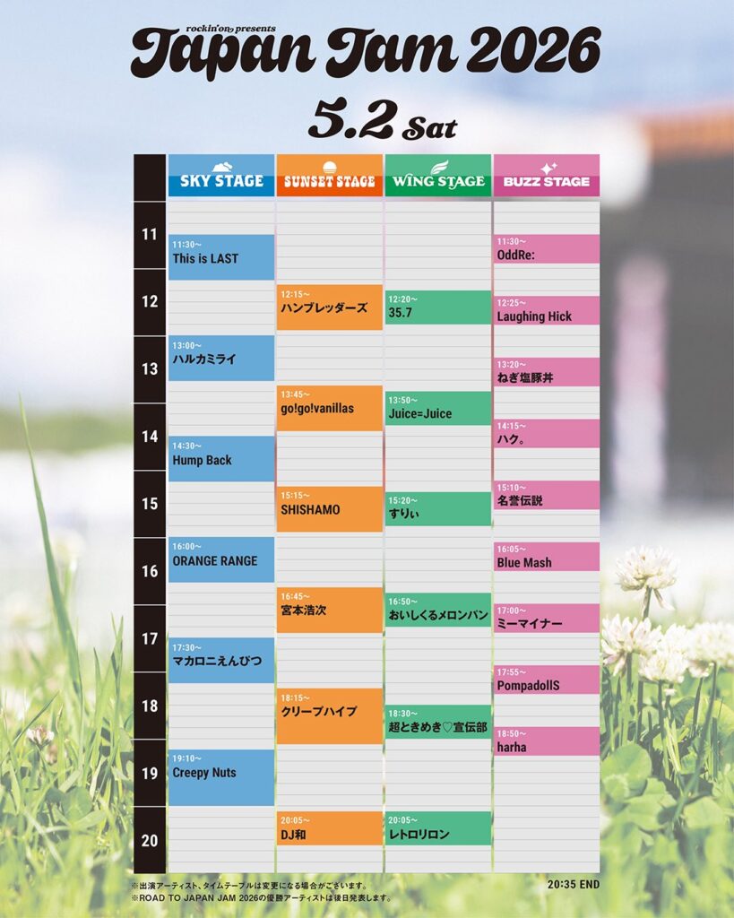 【JAPAN JAM2026 タイムテーブル発表‼︎】
